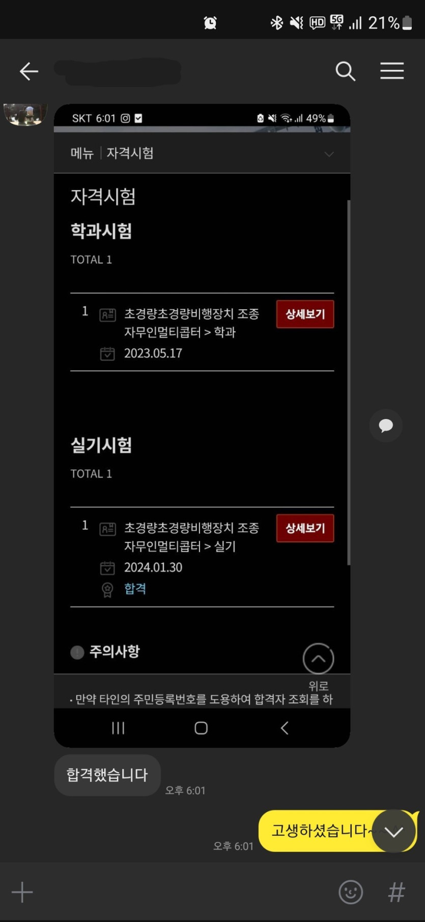 자격증 취득이 필요하셨는데 모두 1번에 잘 합격하셔서 정말 축하드립니다.